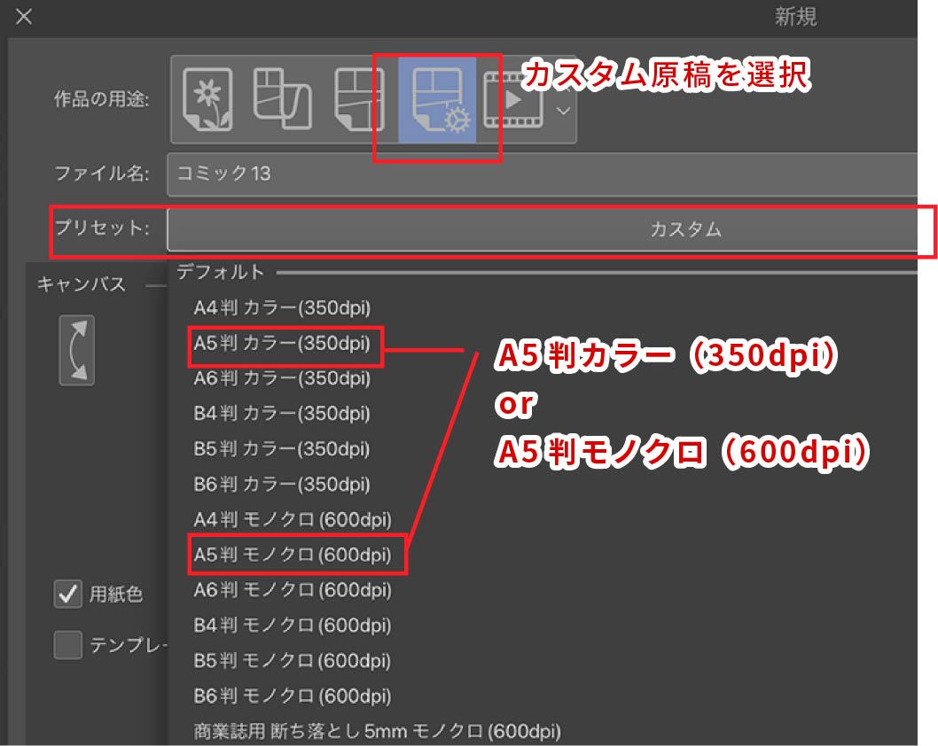 トーンやテキストを含む原稿は「コミック向き」がおすすめ