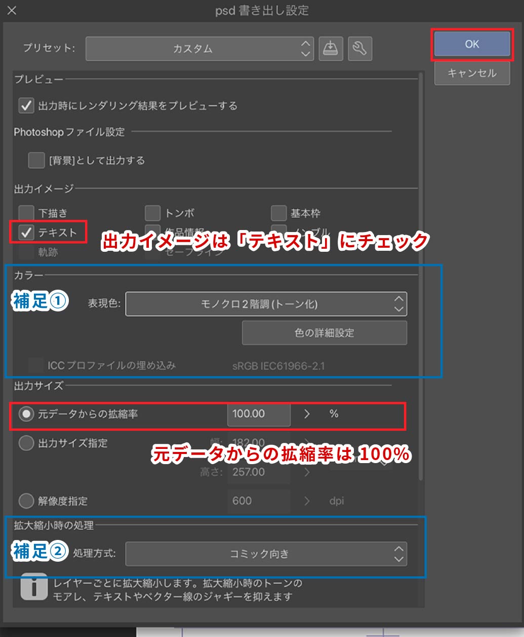 トーンやテキストを含む原稿は「コミック向き」がおすすめ