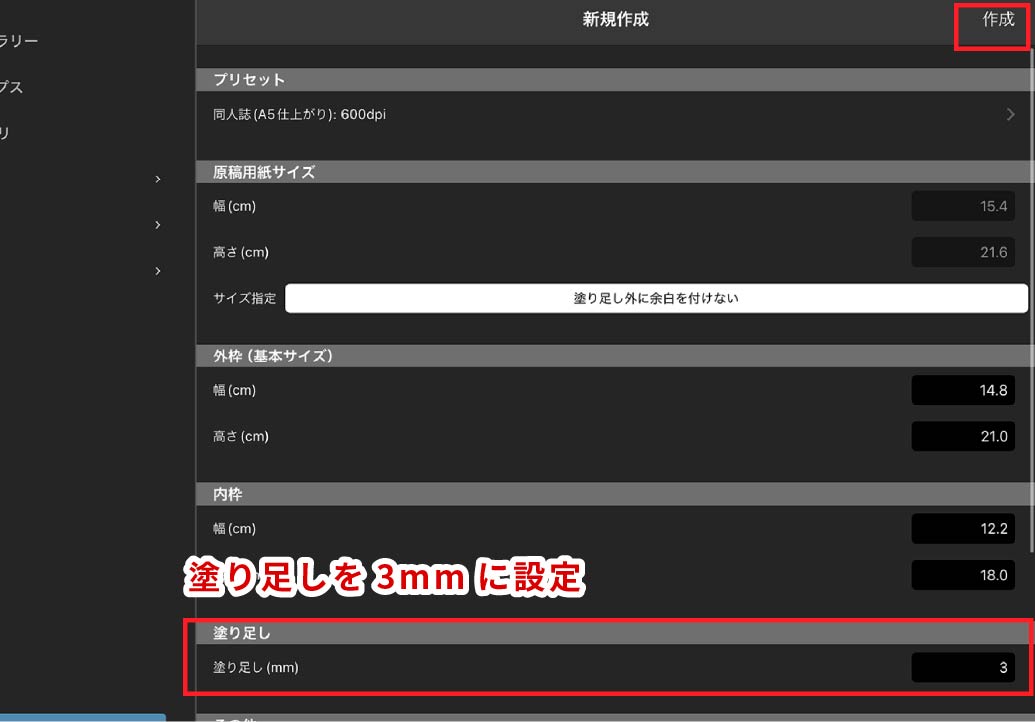 デフォルトの塗り足し幅「5」を「3」に変更