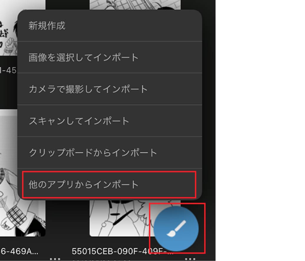 イラスト作成アイコン>他のアプリからインポート を選択