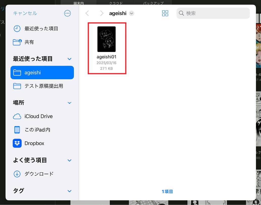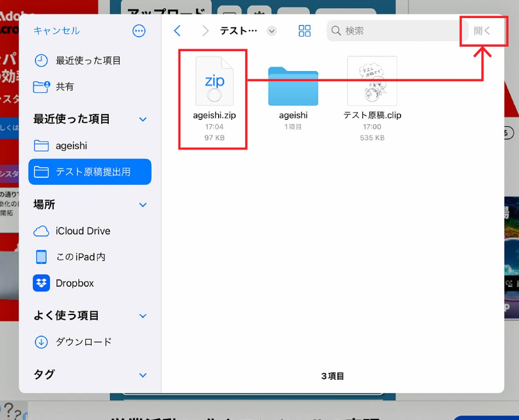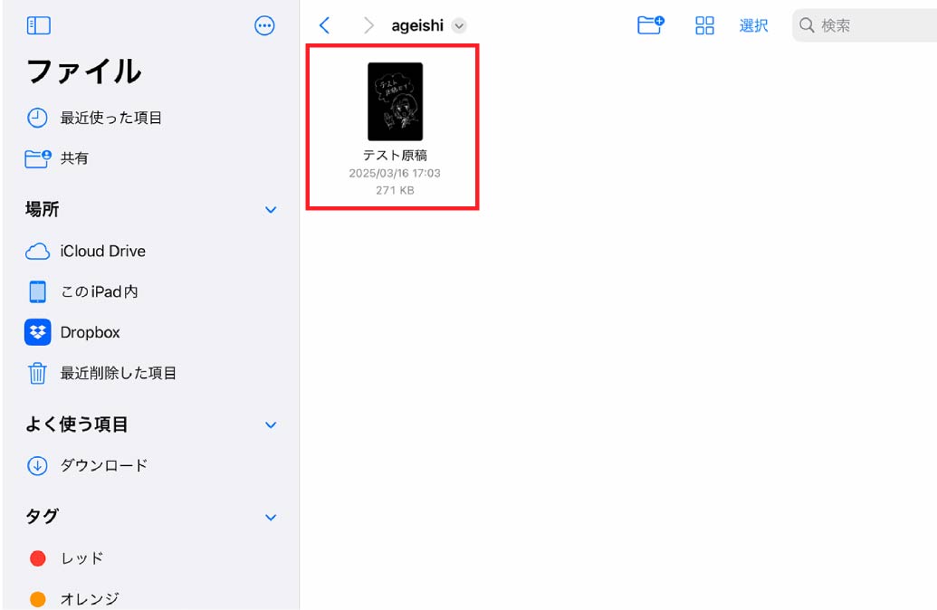 ファイルアプリから原稿データの場所を確認
