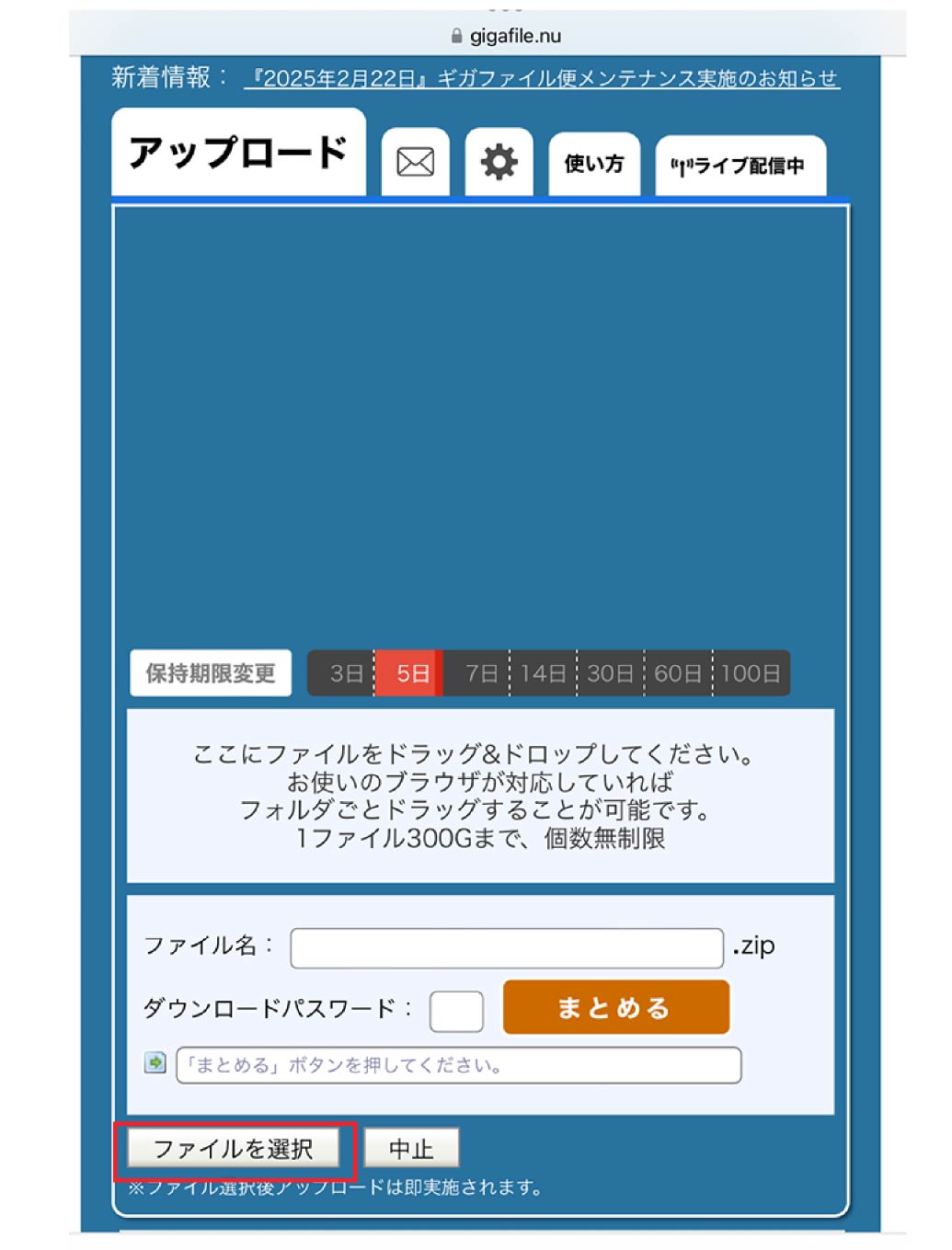 *以下ではギガファイル便での提出方法を案内しますが、他の方法でも大丈夫です。
